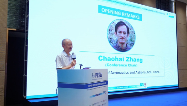 6 月21上午,大会开幕,开幕式由东南大学仲林林副教授主持。会议主席、南京航空航天大学张潮海教授发表开幕致辞。张教授指出,当下全球能源正处于向低碳化、智能化转型的关键节点,电力能源系统的创新突破,亟需打破学科壁垒、跨越国界开展深度合作。他表示,ICoPESA 大会旨在推动电力能源领域前沿技术的思想碰撞与成果转化,期待本次会议凝聚全球智慧,为能源转型注入新动能。