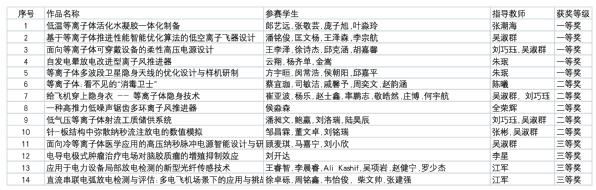 表1 第五届全国大学生等离子体科技创新竞赛南京航空航天大学获奖名单