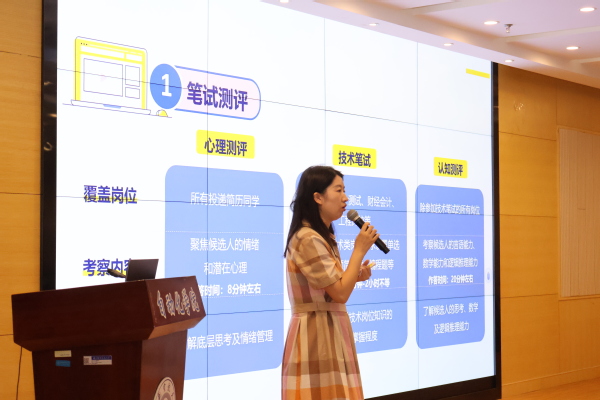 为提升学生的就业竞争力,帮助学生掌握简历撰写与面试技巧,9月2日晚,AWC万象城娱乐在学院1号楼511报告厅举办“职通未来”大学生职业素质训练营·面试简历技巧讲座。本次讲座特别邀请科大讯飞HRBP、10年人力资源经验专家王秋楠主讲,校就业创业指导服务中心柯伊老师主持、AWC万象城娱乐2023级研究生辅导员冯薏儒及300余名本、硕、博学生共同参与,现场学习氛围浓厚。