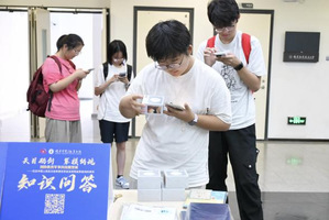 为进一步增强观展过程中的参与感和教育性,展览特别设置了“抗战胜利80周年主题知识竞答”互动区。题目涵盖抗战历史、军事科技发展、国防政策等内容,参与者通过扫码答题,不仅巩固了观展所学,更在跨越时空的回答中与历史对话。这种“以答促学、以学促思”的方式极大激发了大家对历史和科技的兴趣,真正实现了“寓教于展”。